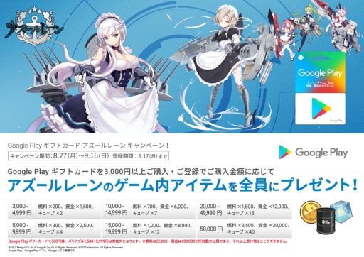 Google Play ギフトカードの購入額に応じて アズールレーン のアイテムがもらえるキャンペーン アニメイトで8月27日から開催