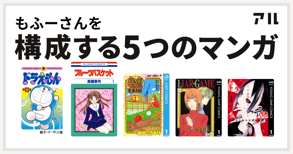 もふーさんを構成するマンガはドラえもん フルーツバスケット 増田こうすけ劇場 ギャグマンガ日和 Liar Game かぐや様は告らせたい 天才たちの恋愛頭脳戦 私を構成する5つのマンガ アル